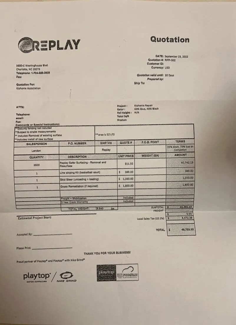 2022年10月14号,画线的当事人收到 HOA 寄来的信函,索赔大约50000美元!HOA 表示,要把整个篮球场全部铲掉,重新铺设。而令人不解的不但是 HOA 的处理方式,还有它们出具的证据。HOA 使用的是北卡罗莱纳州的一个公司估价,画线人强调,这个公司在华州并没有施工执照!