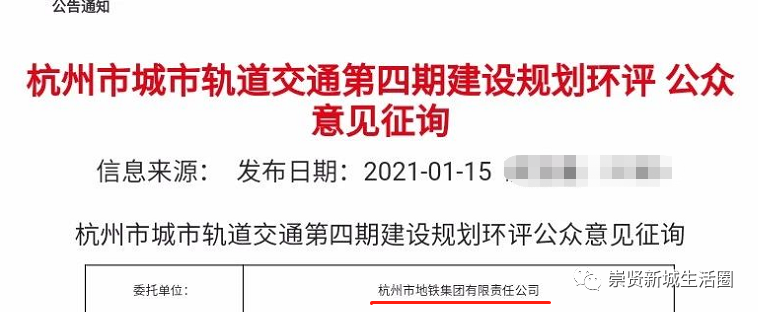 杭州地铁四期规划公众环评意见征询函