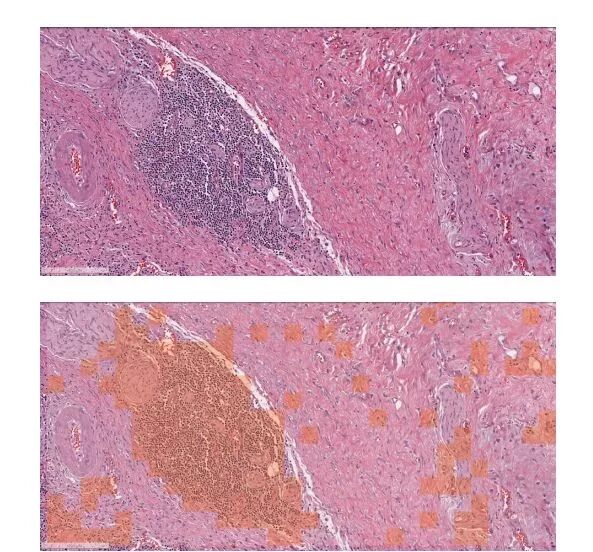 顶端图片为原始图片,底部图片通过橙色叠加层