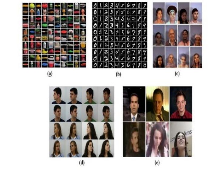 图像数据集: (a) COIL-100, (b) MNIST,(c) MUCT, (d) FEI, (e) YouTubeFace.