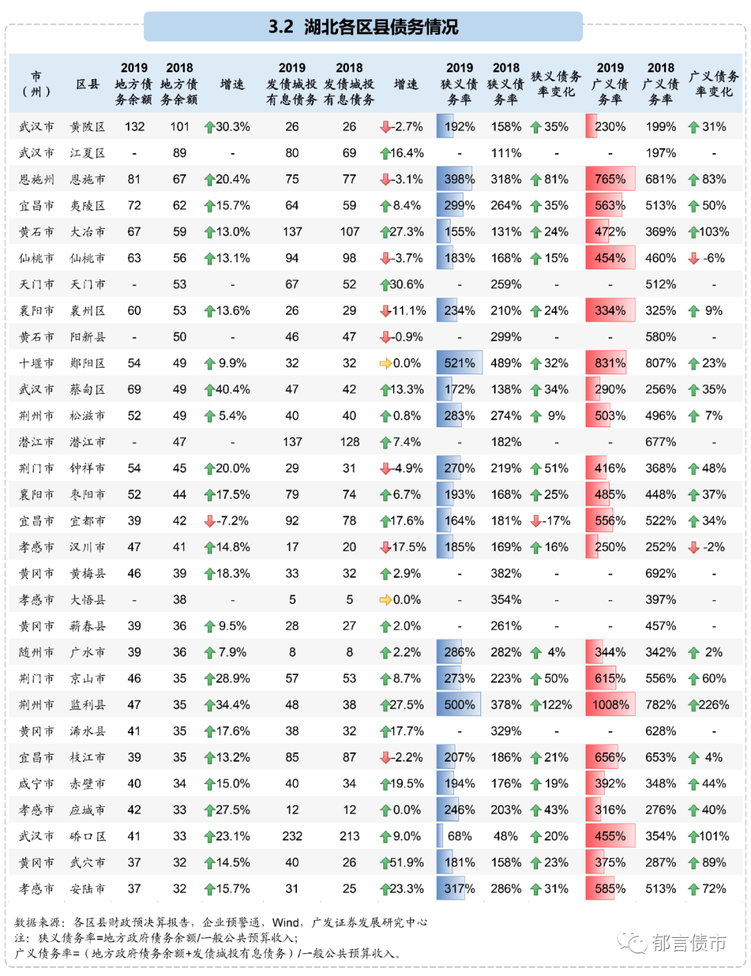 注:1)金额数据的单位为亿元;2)政府性基金收入缺失较多,并且有些前后口径不可比,故计算债务率时分母只用了一般预算收入