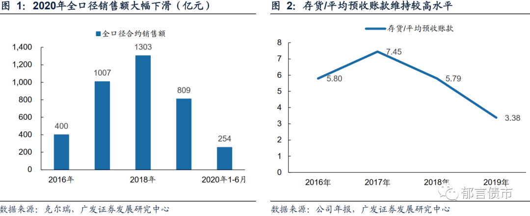 2020年,公司债券到期规模较大(2018年之后未能发行新债),且面临销售额大幅下滑、公司资金链紧张,而引入战略投资者尚未落地,最终走向违约。2020年上半年,泰禾全口径销售额254亿元,同比下滑了44.36%。公司资金链紧张,一方面,受限资产和股权质押比例高,且控股股东所持股份全部被冻结,另一方面,年报披露公司存在大额已到期未归还借款235.58亿元,且有多起被列为被执行人的负面事件。