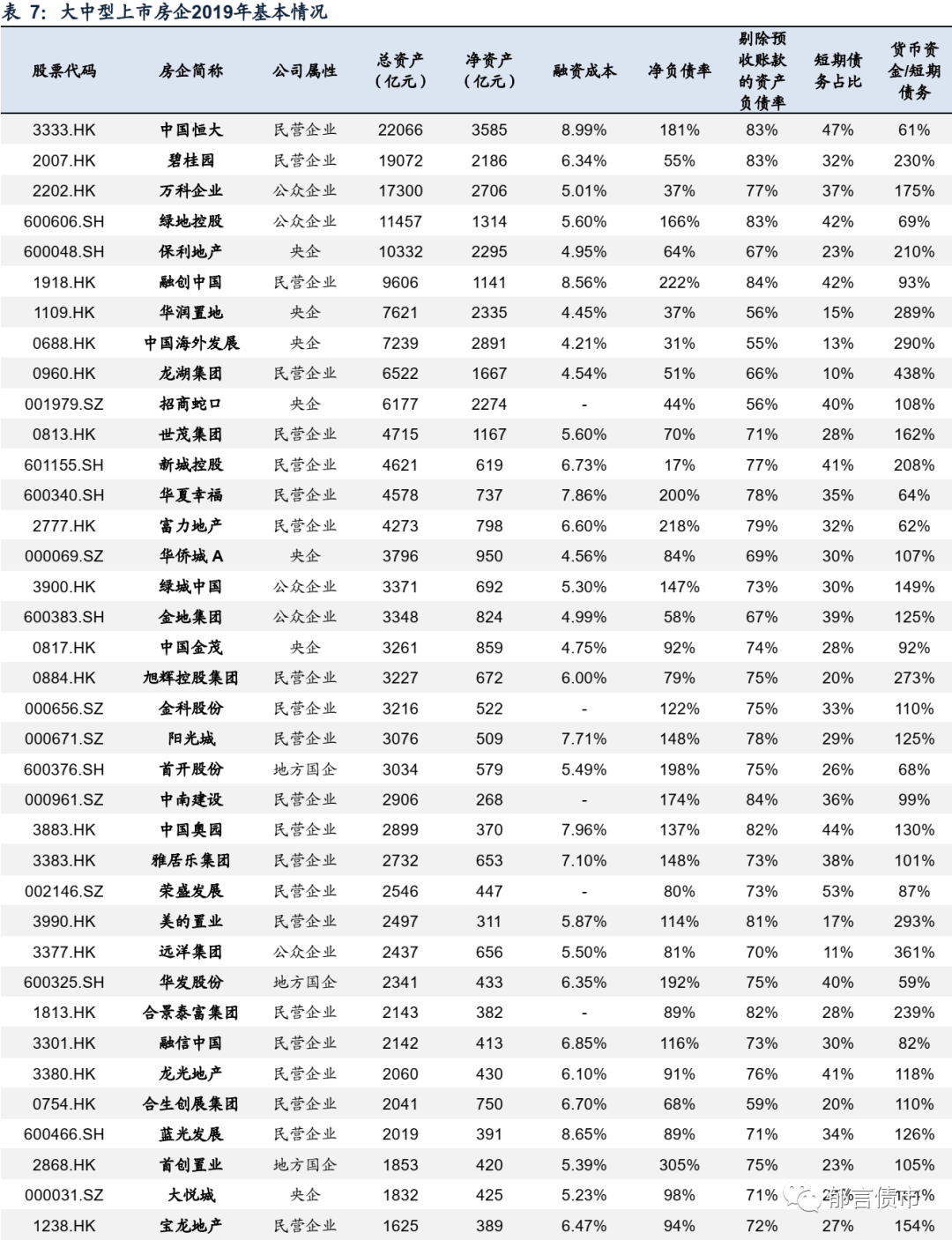 2018年以来,受融资环境趋紧的影响,公司一方面缩减拿地规模,另一方面通过出售项目回笼资金,从而降杠杆、应对短期偿债压力。这一过程中,公司债务结构并没有改善,融资成本逐年升高,2019年平均融资成本接近10%,短期债务占比攀升至57%,货币资金/短期债务降至24%,短期偿债压力进一步增大,且非银行贷款占比居高不下(61%)。