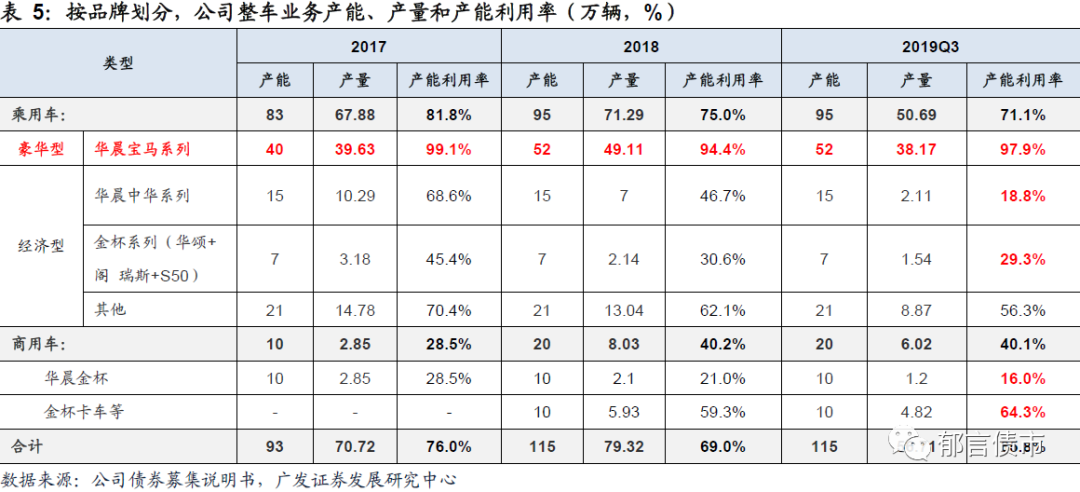 华晨宝马产能利用率高、市占率高,而自主品牌产能利用率低、产销量下滑。华晨宝马2017-2019年产能利用率均高于90%,且产销量稳步增长,2019年营业收入为1526.33亿元,同比增长18.7%。华晨宝马为国内三大豪华车制造商之一,2018年市场份额为22.30%,位列第三,仅次于奔驰(23.60%)和奥迪(23.10%)。反观公司自主品牌,各系列的产能利用率均持续下降,2019Q3华晨中华系列产能利用率仅为18.8%,金杯系列产能利用率为29.3%,远低于79%的国际标准。