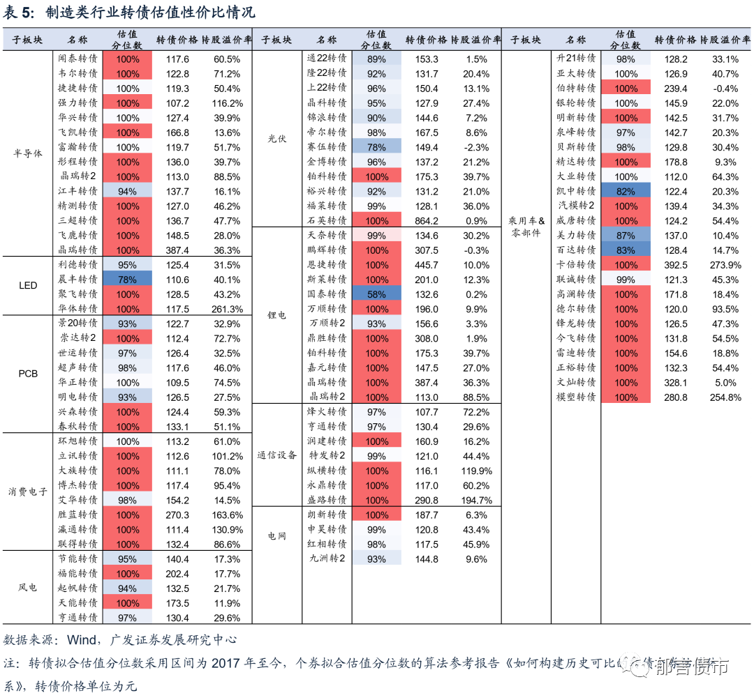 制造类行业中,拟合估值分位数相对较低的个券,包括晨丰转债、起帆转债、赛伍转债、万顺转2、凯中转债、美力转债、百达转债,可结合正股情况适当关注。