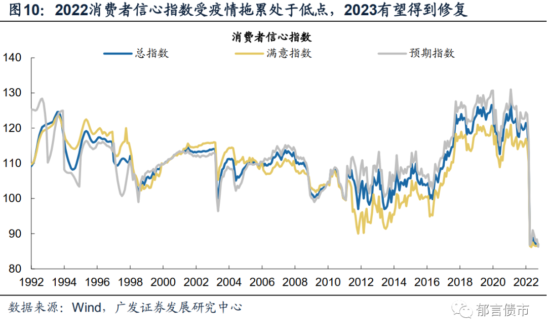 这种GDP同比增速的反弹,一定程度上由低基数所推动,投资、消费和工业增加值等指标的同比增速也会出现类似的反弹,债市对此可能提前形成预期。而2023年疫后经济恢复,经济周期可能趋于上行,这对债市的影响可能大于基数因素,重点观察疫后经济活动恢复的节奏。