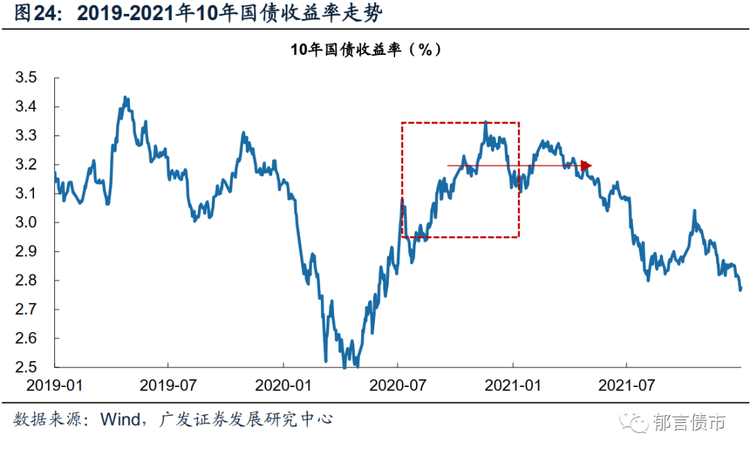 这种现象背后,是政策利率向市场利率的传导效率明显提升。资金供给方面,2015年前后,基础货币供给的方式发生调整,由外汇占款派生转为央行投放,使得金融机构依赖于央行投放资金。央行通过建设利率走廊,引导银行间市场利率围绕政策利率波动。2019年以来,DR007多围绕7天逆回购利率波动。LPR形成机制改革之后,从MLF利率到贷款利率的传导,使得MLF利率接近基准利率的作用,对债券利率的影响也相应得到加强,存款利率形成机制改革进一步强化了传导效应。融资需求方面,房住不炒和隐性债务,使得以往周期中对利率相对不敏感的地产企业和地方政府融资,受到一定程度的约束,融资需求变化带来的利率波幅较以往周期明显缩窄。