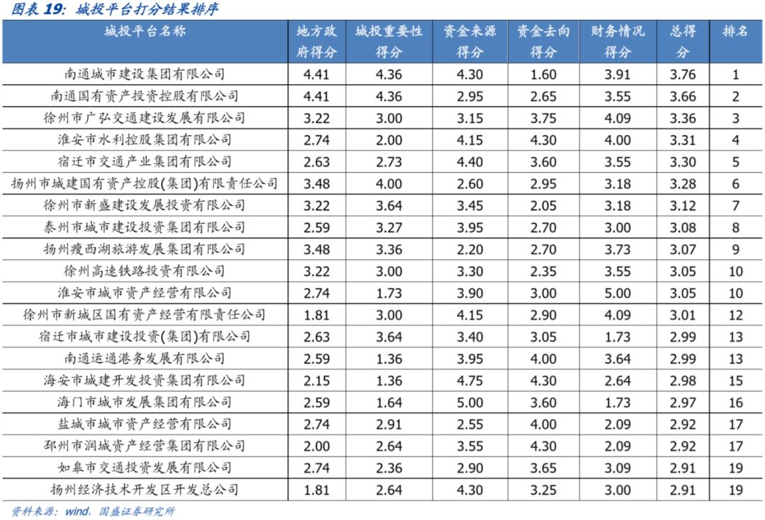 三、苏中、苏北城投平台打分排序