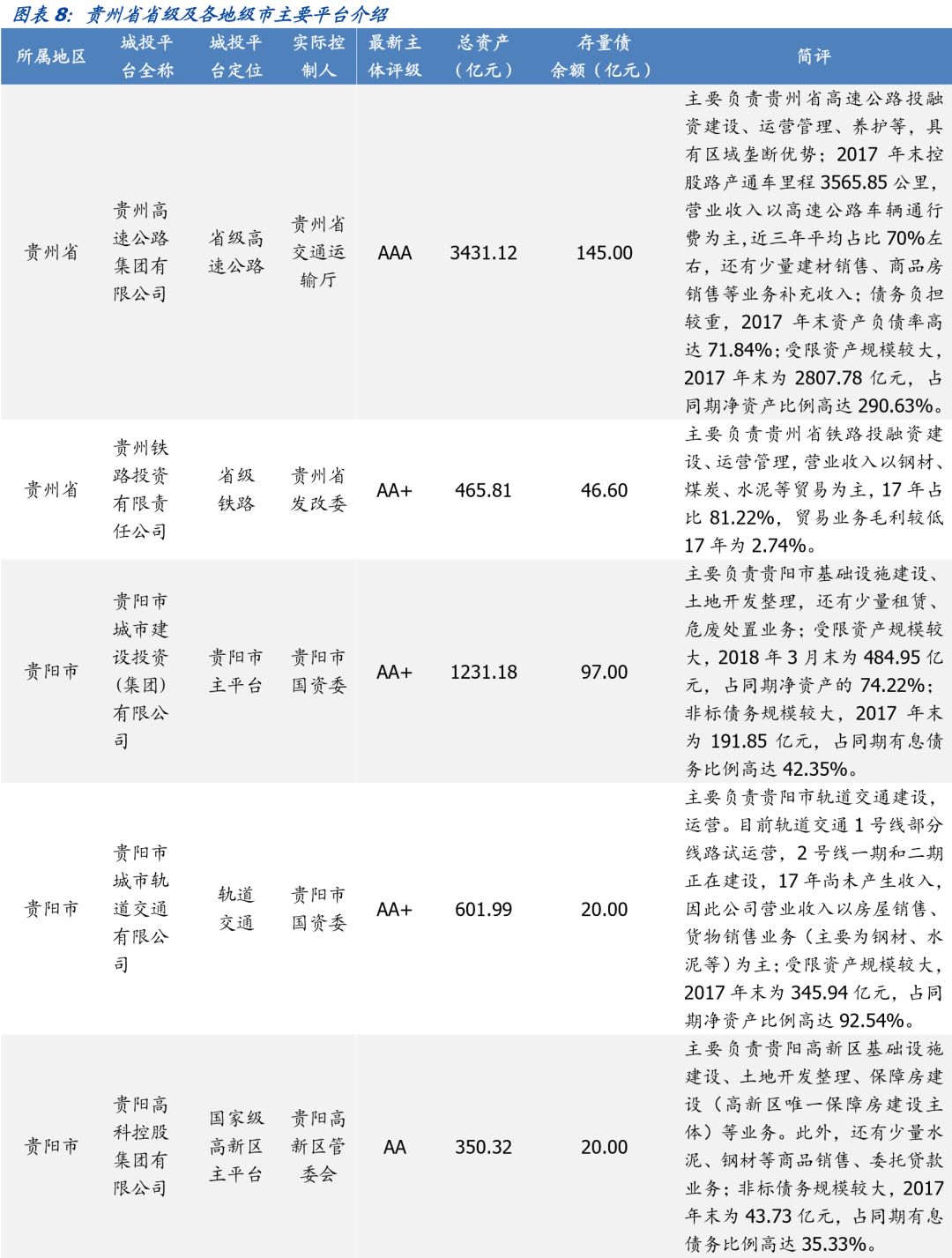 具体分析详见国盛证券研究所2018年8月15日发布的《贵州省68个城投平台详尽数据挖掘——走遍中国系列之五》报告