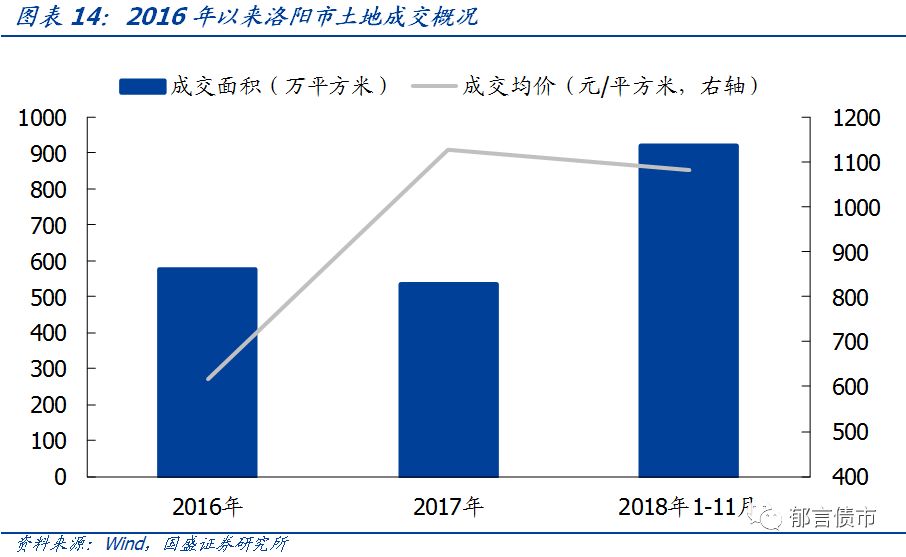 土地市场方面,量升价跌。2017年洛阳市土地成交金额60.1亿元,同比上升69.3%。2018年1-11月土地成交金额为99.5亿元,较2017年全年成交额增长65.6%。土地成交均价方面,2016年、2017年和2018年1-11月先升后降,分别为616.1元/平方米、1125.6元/平方米和1082.1元/平方米。