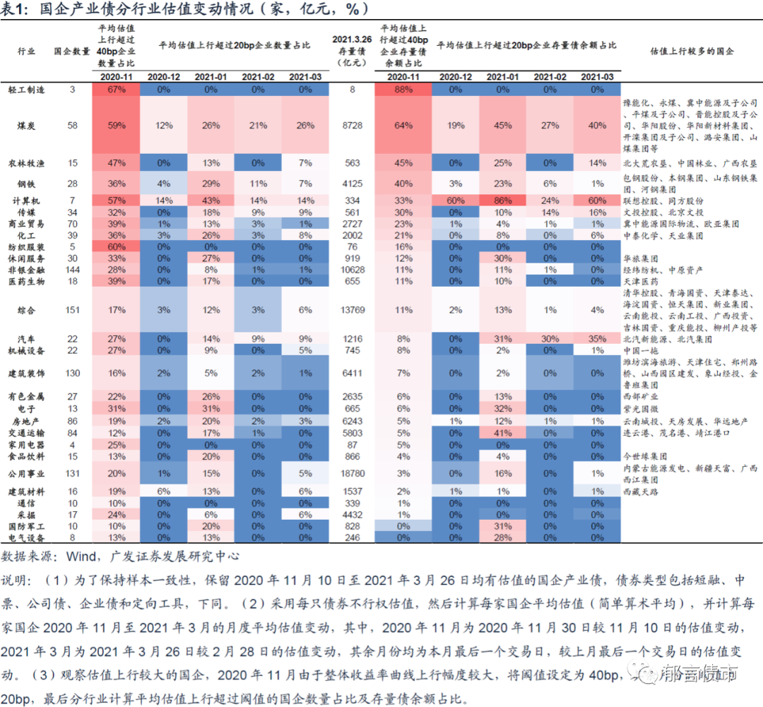 煤炭、钢铁、计算机、汽车、农林牧渔等行业受到连续冲击,估值不断走高。其中煤炭和钢铁,这两个行业整体盈利较弱,持续亏损的企业数量相对较多。并且,两个行业今年整体到期压力较大,截至2021年3月26日,3月26日至年末到期及回售规模占存量债比重在40%左右。