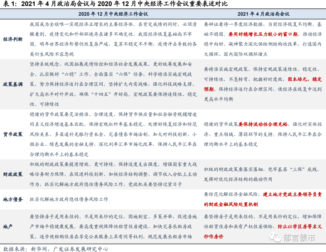 4月30日政治局会议表述中,与债市密切相关的主要有三个方面:
