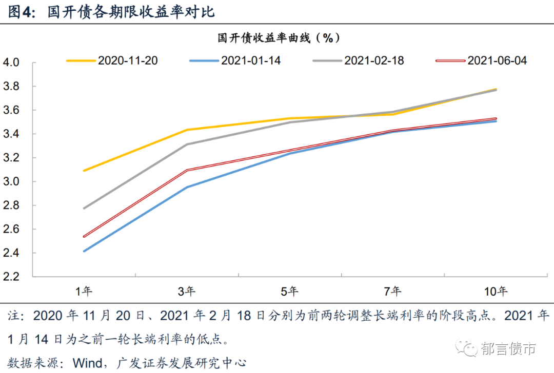前期社融、经济数据受基数影响较大。今年1-4月经济、社融等数据同比增速,受2020年同期基数波动的影响较大,部分经济指标同比、两年几何平均同比、环比季调等指标方向相反,因而市场对前期数据存在一定程度的分歧(见《债市正在起变化》)。进入下半年,基数影响有所减弱,经济基本面数据对债市的影响可能会有所显现。