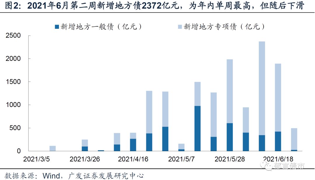 从周度发行量来看,新增地方债发行在6月第二周(7-11日)达到2372亿元,为年内单周最高,但加速未得到延续。6月第三周发行规模降至1891亿元。6月第四周进一步降至497亿元。