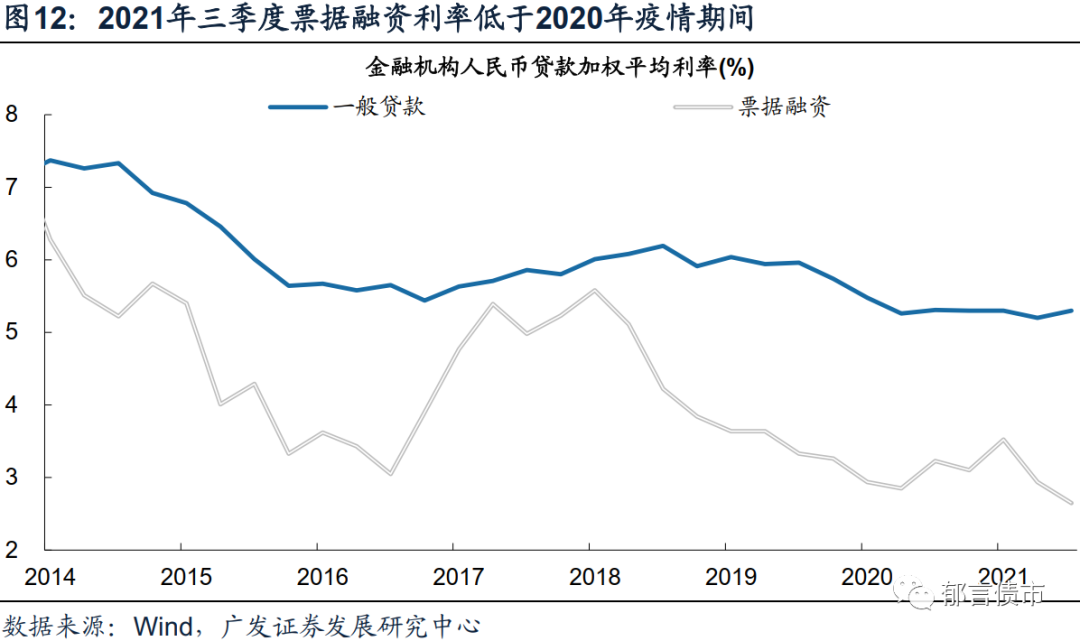 然而,如一季度使用了较多的财政和信贷资源以对冲经济放缓,那么进入二季度或下半年,经济再度出现放缓之时,采用利率、汇率等价格型工具进行对冲,可能成为备选。观察2021年金融机构加权平均利率分项走势,2021年三季度票据融资利率2.65%,较2020年的低点2.85%下降20bp;而同期一般贷款利率5.30%,较2020年的低点高出4bp。票据融资利率与债券利率走势同步性较高,继续下行空间有限。后续为对冲经济放缓,可能需要下调MLF利率以引导贷款利率下行,才能达到降低实体经济综合融资成本的目的。