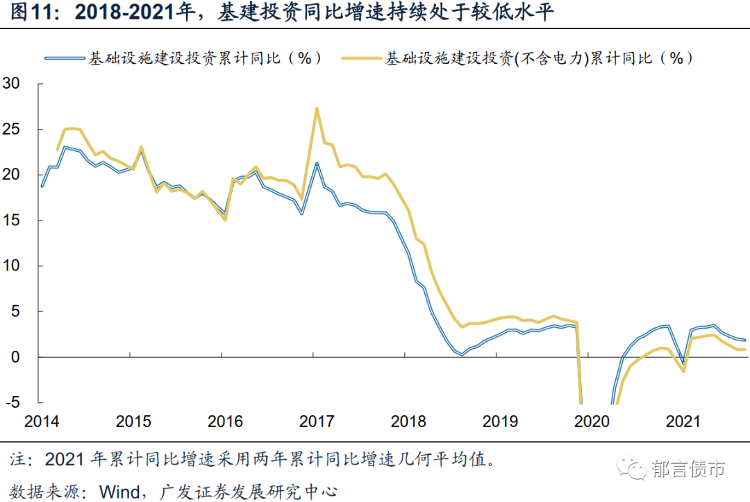 跨周期调节下的基建和地产,宽松幅度预计受到约束。2018-2021年基建投资表现可作为一个参考。2017下半年至2018年上半年地方隐性债务约束明显收紧,对基建投资形成拖累。2018年7月国常会提出“按照市场化原则保障融资平台公司合理融资需求”,基建融资收紧的状态得到边际缓解。但除了受疫情导致的低基数短暂影响的2021年上半年,2019-2021年各月基建投资同比增速持续位于5%以下的较低水平,大幅低于2018年之前的增速。