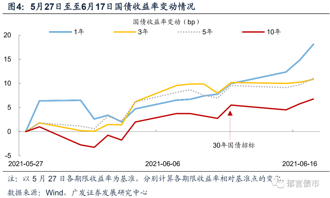 市场“缺钱”的另一个表现,6月11日招标续发的30年期国债,中标收益率为3.6457%,高于同期限国债到期收益率3.6276%,而4-5月国债一级招标利率往往低于二级到期收益率。