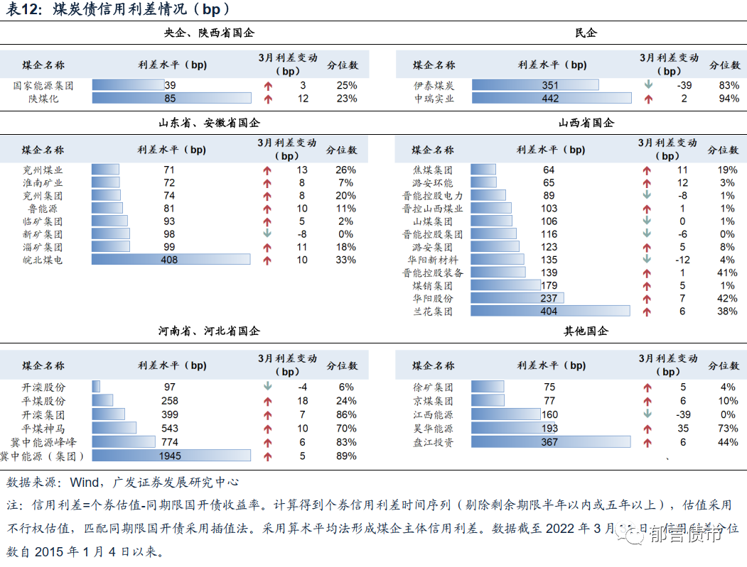 2022年3月,煤企债利差多数走扩,走扩幅度大多在5-10bp左右。山西煤企中,华阳新材料、晋能控股电力、晋能控股集团利差收窄6-12bp。