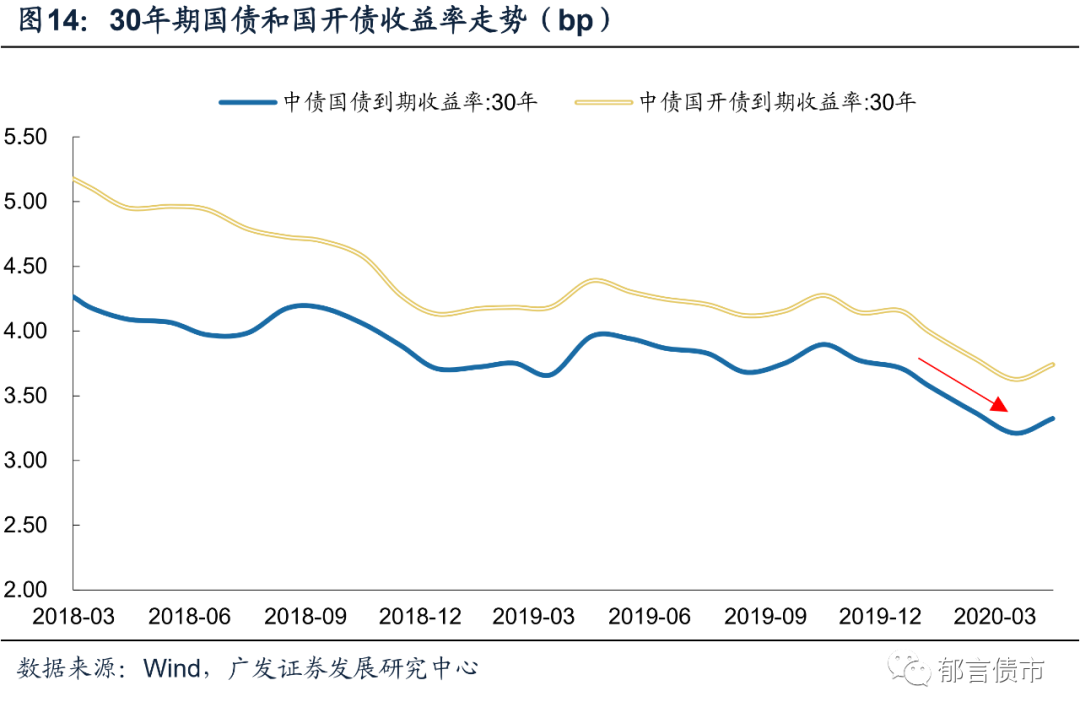 末期阶段,资产荒在利率债交易中更为明显,包括超长久期在内的利率债收益率均明显下行。2020年1-3月,30年期的国债和国开债收益率累计下行幅度均超过了50bp。