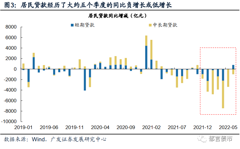 接下来重点可能在居民部门融资修复,以稳定居民部门杠杆率。自2021年二季度开始,我国居民短期贷款和中长期贷款进入一个同比低增长甚至负增长的阶段,一直持续至今。期间居民短期贷款同比累计减少1.24万亿元,居民中长期贷款同比累计减少2.46万亿元,两者合计减少3.70万亿元。这其中的原因,既包括2021年地产信贷收紧带来的影响,使得居民中长期贷款增长放缓;也包括今年局部疫情背景下,部分居民收入受到负面影响,对居民的负债意愿同样造成拖累。后续居民部门可能难以转向大幅加杠杆,更可能是从融资负增转向同比持平或小幅正增长,其对经济的拖累效应相应减小。