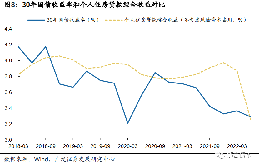 此外,房贷利率下行,对银行而言超长期限国债吸引力或上升。当前首套房贷利率最低为4.25%,8月15日MLF利率下调后,5年LPR也可能继续下调,带动首套房贷利率继续下行。以首套房贷利率4.25%计算,扣除增值税和所得税之后(分别为6%和25%),税后综合收益为3.0%(不考虑风险资本占用),已经低于当前30年国债收益率3.11%。如8月5年LPR下调幅度超过10bp,首套房贷利率的税后收益就会低于2.93%。因而,随着房贷利率下行,超长期限国债对银行的吸引力可能会相应上升。
