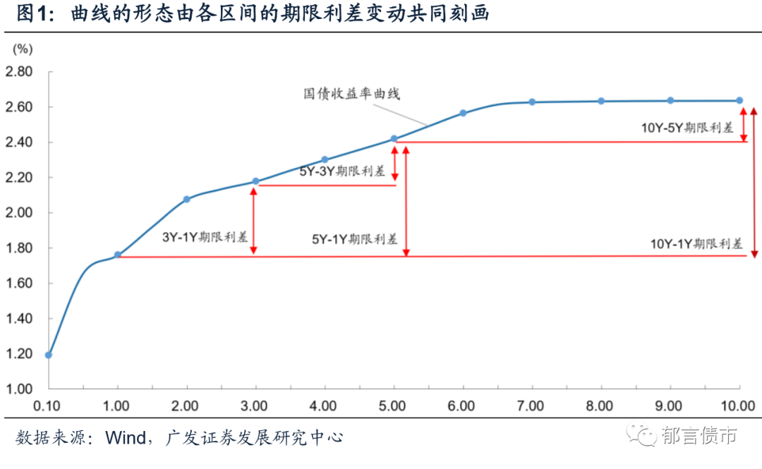 期限利差是收益率曲线研究框架的基础,关注不同期限之间的利差变化可以帮助投资者挖掘曲线中的局部投资机会。由于收益率曲线在时间维度的连续性,因此将所有不同期限之间的利差进行细分研究并不现实,市场上常见处理方式是在交易活跃的期限处对收益率曲线做断点切分,利用这些关键子区间的期限利差来描述整条曲线的形态。如我们在考虑1Y至10Y间的收益率曲线时,往往通过观察3Y-1Y,5Y-3Y,7Y-5Y以及10Y-7Y的期限利差来衡量曲线的凸起程度、倾斜程度以及局部的特殊形态。