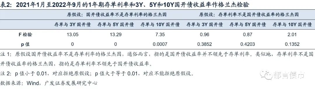 统计检验也指向同业存单利率走势,并未领先于国开债收益率。我们通过一个基于日度数据的统计检验,在日度层面观察同业存单和债券利率的关系。考虑到同业存单日度净发行波动较大,我们对该问题进行简化,主要基于日度的同业存单利率和3年、5年和10年国开债收益率,做格兰杰检验。这种统计检验更多是作为上述历史分析的补充。基于统计分析发现,3年、5年和10年国开债收益率是1年期同业存单利率的格兰杰因(F检验拒绝原假设),而1年期同业存单利率不是国开债收益率的格兰杰因(F检验不能拒绝原假设)。