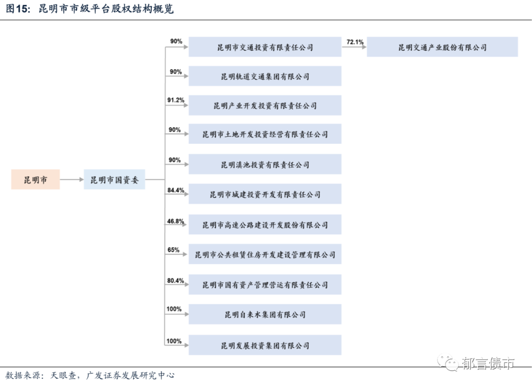 我们重点选取了存量债规模相对较大的省本级、昆明市、红河州和玉溪市,分别从产业结构和平台概况方面进行详细分析。