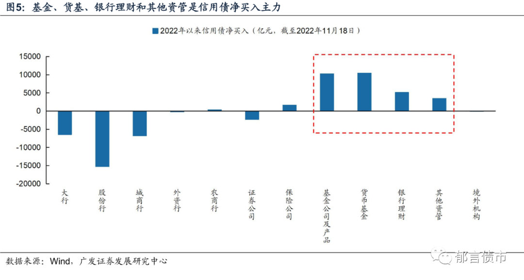 三是银行理财产品全面净值化,在债市调整后,理财赎回委外基金产品,基金进一步抛售债券,又会影响理财净值。从信用债的投资者结构来看,主要是理财委外的基金、货基、资管产品净买入信用债。目前理财还处于调整阶段,信用债增量资金较少,因此本轮信用债的调整幅度将更大,且修复过程相对较慢。