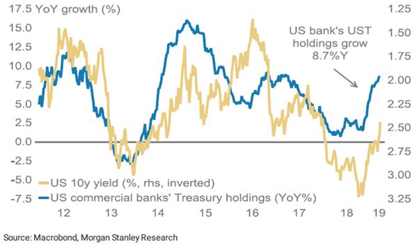 在过去一年中,美国银行业对于债券规模自2018年11月以来增加了8%。因此之后的还本付息,在基本面预期开始弱化的交叉时刻,可能随时成为金融市场以及宏观经济的“导火索”。