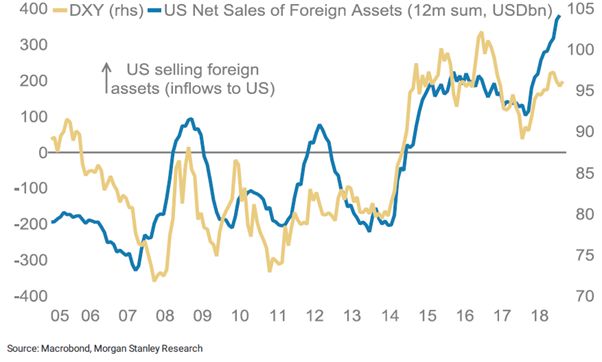 外国对美国的金融和直接购买总额一年多来,投资相关资产一直在下降。但是资金汇回美元计价资产的美国账户里,暗中成为了美元的支撑。这就是为何美元近期的波动没有去反应其疲软的基本面,估计跨境资本的流动对美元还将有些许影响。