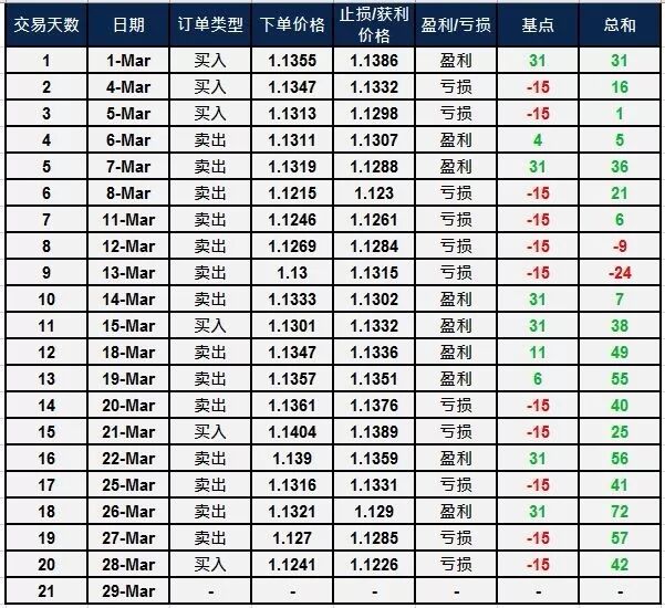 尽管昨晚交易后走势形态良好,但我们并没有胜利。欧元市场的交易形态再一次地和我们的策略较为类似,但涨势不足以达到我们的盈利水平。我们今晚将进行本次活动的最后一次交易,目前全月整体已确保盈利。请查看下方往日交易结果:
