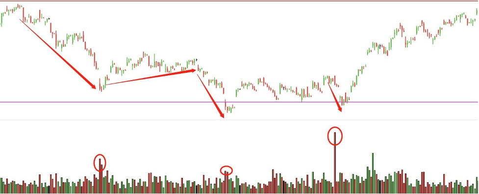 在股价在经历连续下跌后,突然出现成交量放大式的下跌,这往往是主力借此引发恐慌性抛售,在这个时候股价短期反弹的概率较大。所以散户为什么经常在选择割肉的时候会割在最低点。