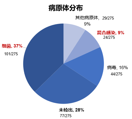 图:(左)在病原体分布中,细菌占37%、混合感染占9%。