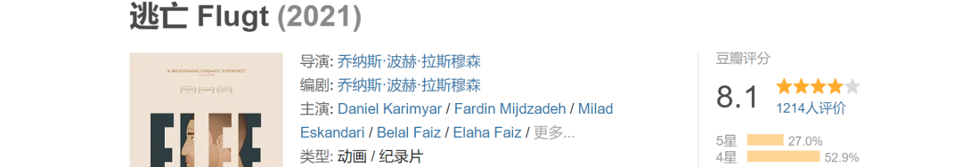 [在公号发送 文末右下角【】内的 关键词查看]丹麦选送年度动画力作《逃亡》角逐奥斯卡最佳国际影片奖。本片是一部动画与纪录结合的回忆录,入围戛纳,获圣丹斯评审团大奖,安锡国际动画节最佳影片。MTC88,在全美十几个影展放映,得到影评人高度赞赏。阿富汗裔的阿明,已在丹麦落地生根,即将与爱人结婚。童年时的苦难记忆,长大后仍挥之不去。家乡平静生活被战火摧毁,他随家人逃到莫斯科,再艰难偷渡到丹麦。回忆颠沛流离的日子,以及种种冷血经历。最后逃避不了的,是一直压在心底的秘密。