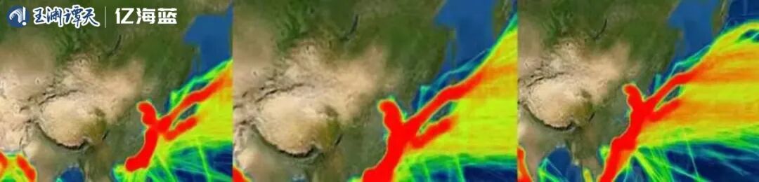 下面三张图,呈现的是过去三年全球航线热力图始终不变的一个切面。热力图上最红的区域,始终都是中国沿海港口。