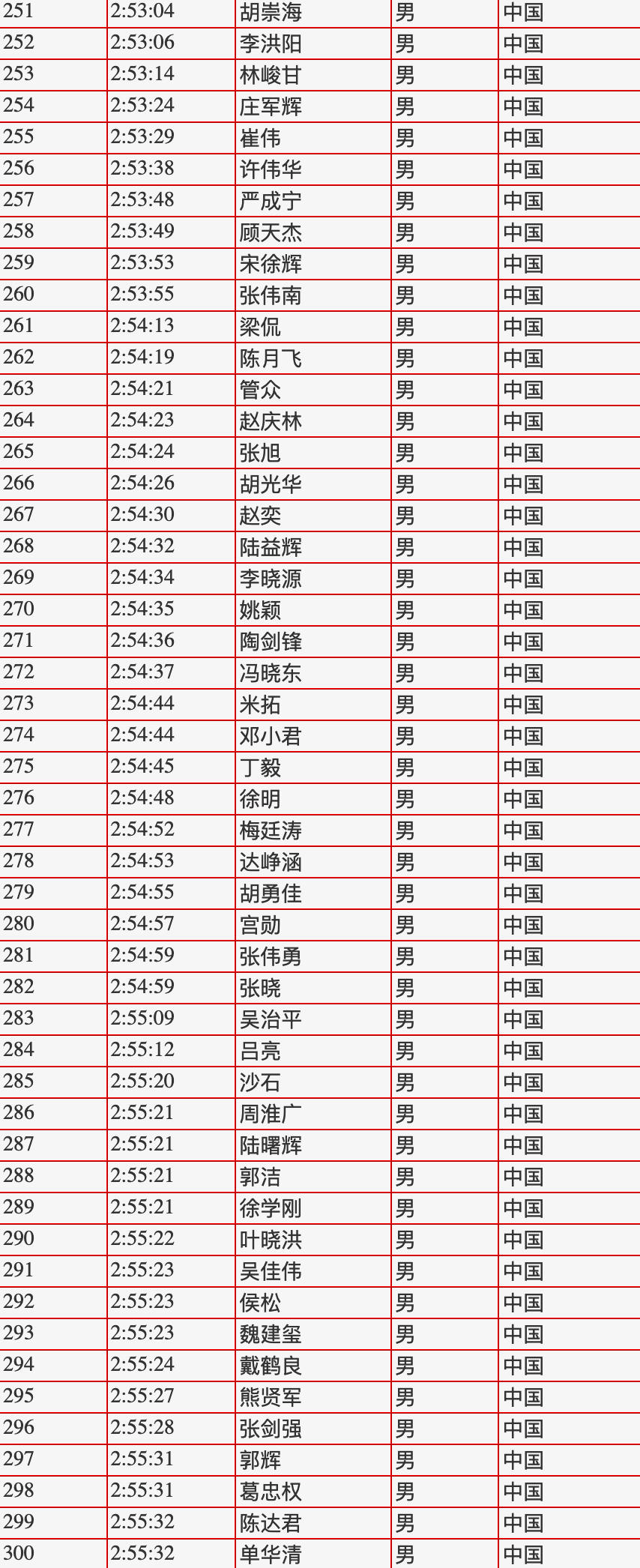 26 | 218 | 周波 | 云南 | 2:16:46 |