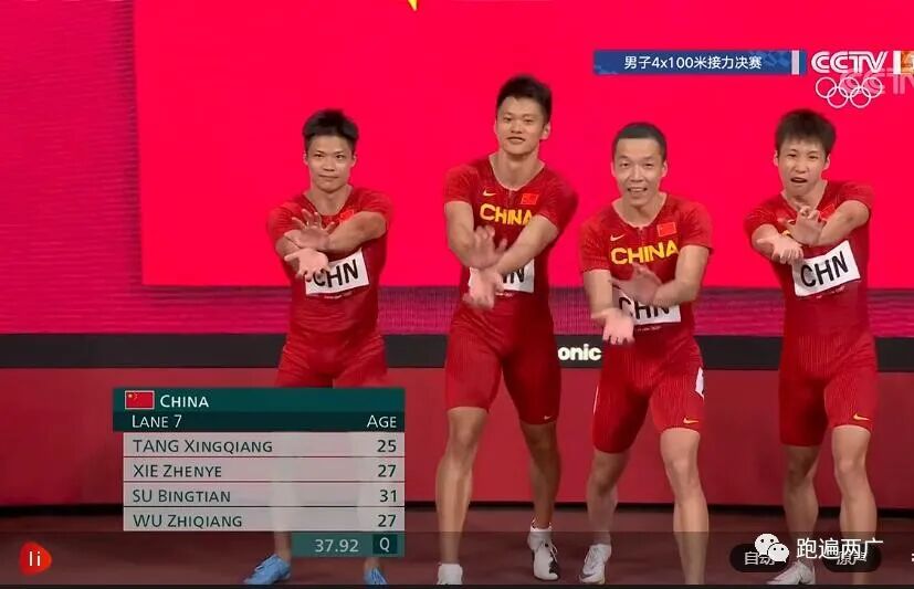 在接下来的东京奥运会田径男子4×100米接力小组决赛中,由苏炳添领衔的中国队(苏炳添、谢震业、汤星强、吴智强)以37秒79获得第四名,平了奥运会最好成绩!意大利队以37秒50获得金牌,英国队以37秒51获得银牌,加拿大队以37秒70获得铜牌。