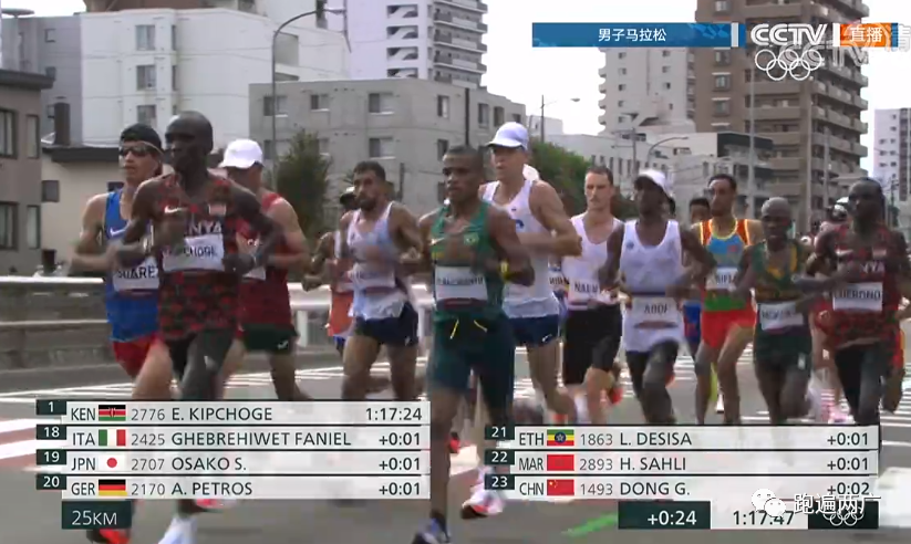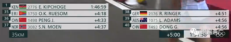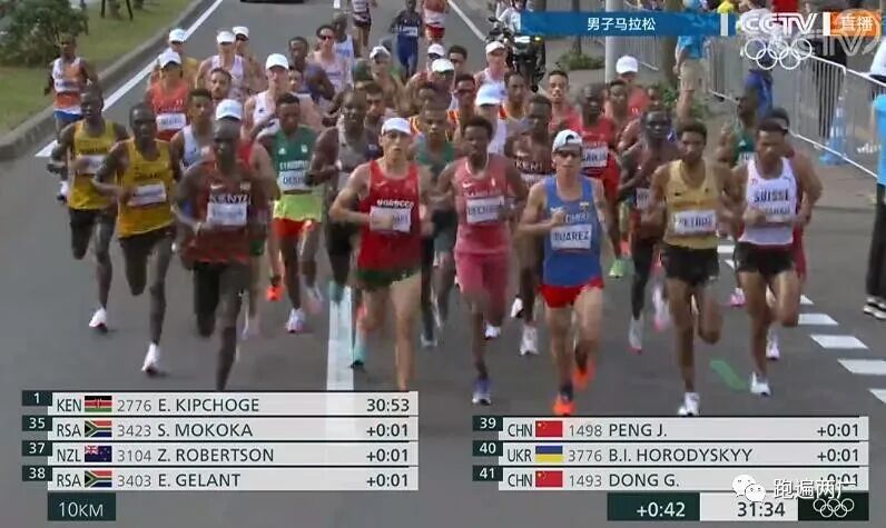 23公里之后,第一集团的中国选手仅剩下董国建了!紧紧跟随第一集团后部分。彭建华离第一集团越来越远了!