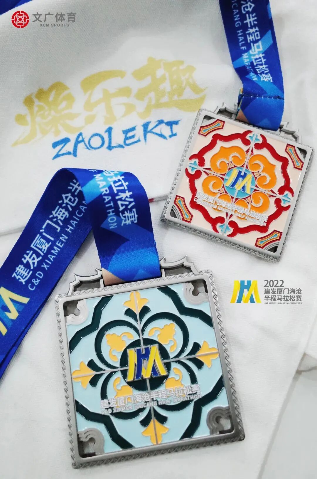 深度提炼海沧文化特色,2022建发厦门海沧半程马拉松赛继续朝“闽南文化马拉松”方向发力,采用当下年轻、抓眼球的潮流风格作为主视觉,并运用到奖牌、参赛服等周边产品的设计当中。