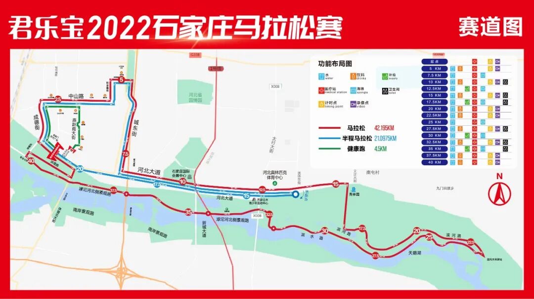 (一)马拉松:正定长乐门文化广场(起点)—河北大道—成德南街—中山路—旺泉南街—兴荣路—城东街—河北大道—文正大街—滹沱河北岸滨河路—滨河路(九门郡台西湖)向南—滹沱河北岸滨水路—滹沱河北岸景观路—子龙大桥西侧辅道—河北大道—正定长乐门文化广场(终点)