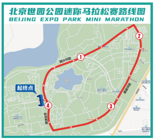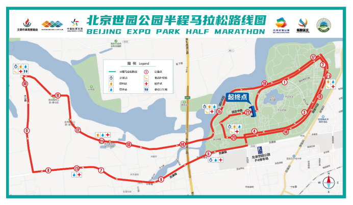 北京世园公园,即北京世园会园区,位于延庆妫水河畔,风光秀丽,集自然风景、园林花卉、各式风格的展览馆和民族展览园区于一身,是延庆跑步圣地。本次比赛,结合了北京世园公园的园区道路和百康路、滨河南路等社会道路,赛道平坦宽阔、景色优美。