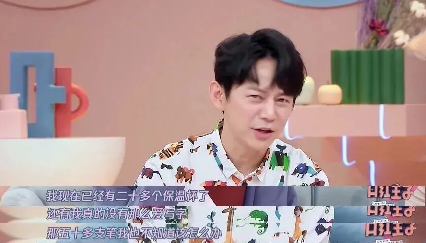 他说自己现在“已经有20多个保温杯、50多支笔”。
