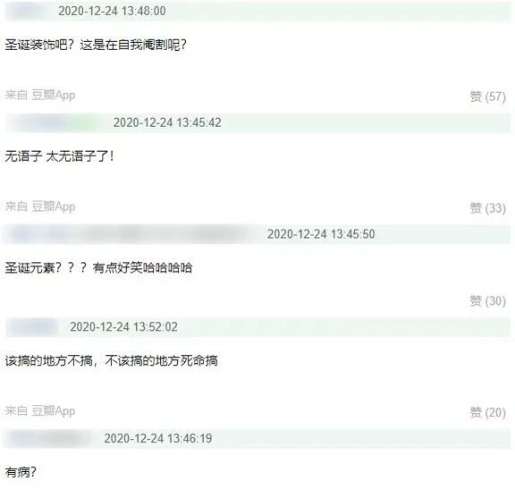然而播出时,节目里的圣诞元素全都被刻意虚化、打码处理。