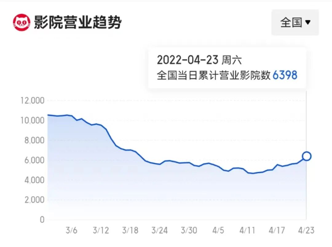 全国影院的营业率持续在40%多的低位,4月22日周五大盘票房创10年内周五最低纪录,仅1379万。这些都严重打击市场信心。