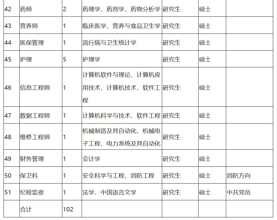 本次公开招聘计划推出51个岗位,招聘工作人员102名。