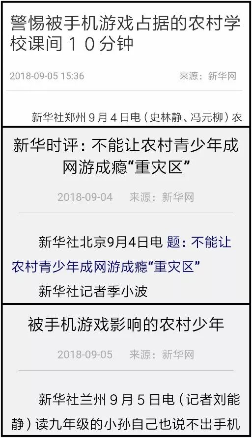 另外还有个共通点是,在这一系列以“关心留守儿童”为主题的报道里,游戏没有像之前那样被抽象成一个“易上瘾的不良事物”,而是变得更具象了。批判游戏本身,已经不是这些报道的主要目的,揪出游戏后面的主谋才是。游戏终于被官方认可成了一个市场产品。