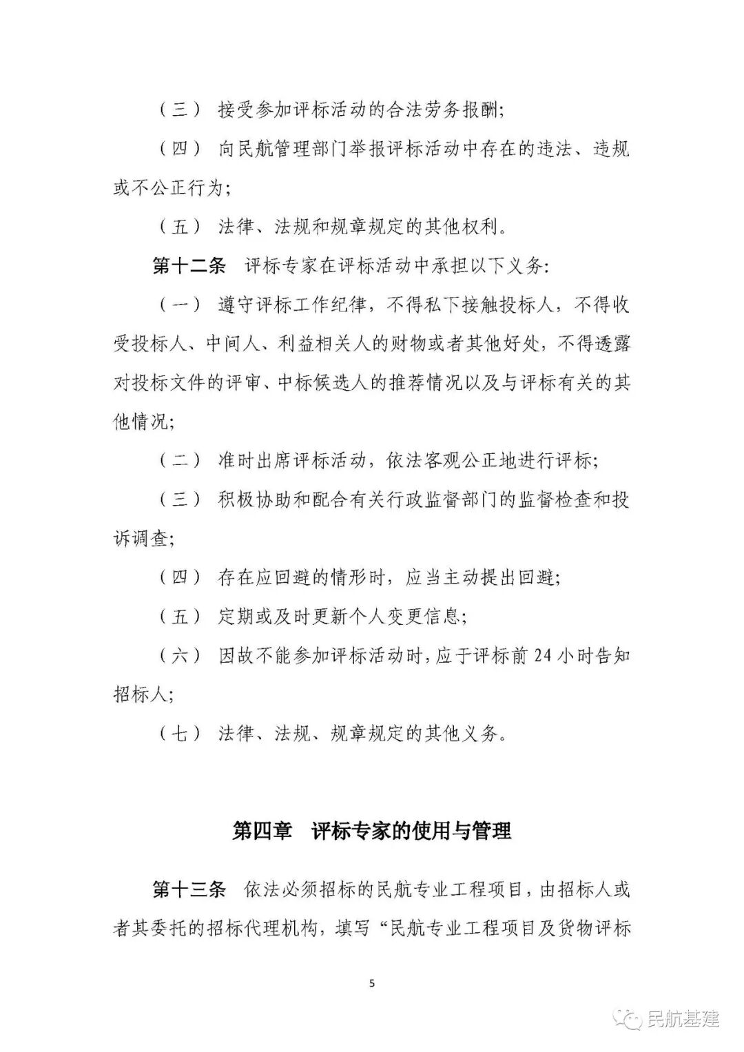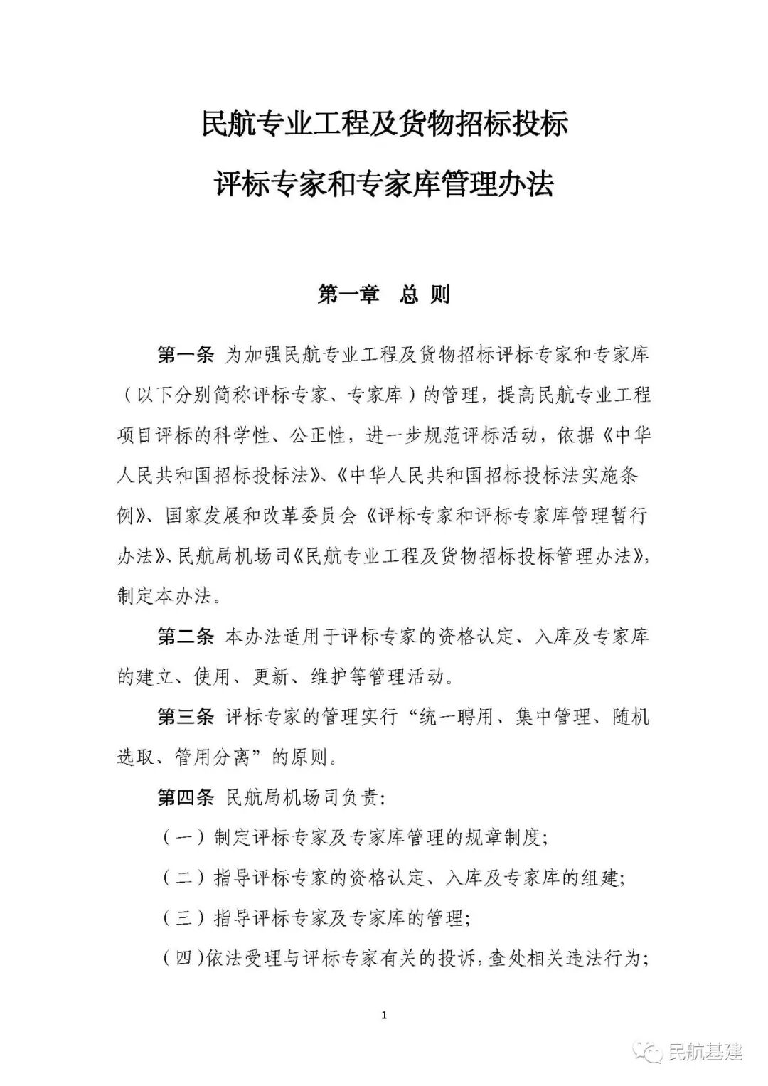 民航局机场司修订《民航专业工程及货物招标投标评标专家和专家库管理办法》的通知