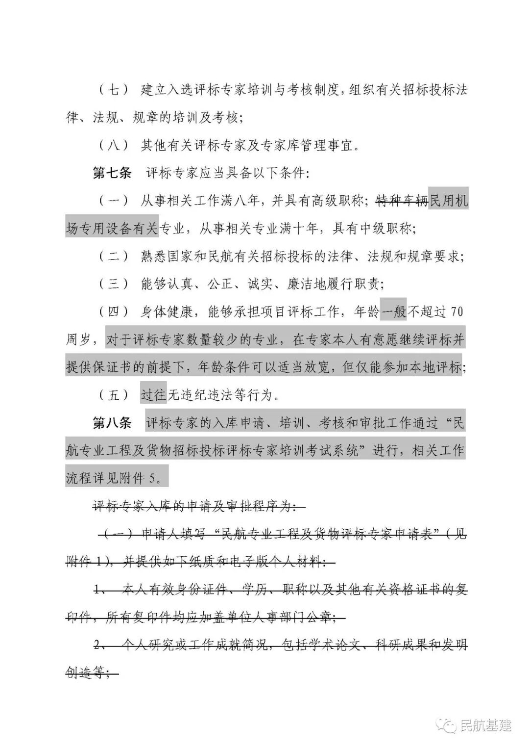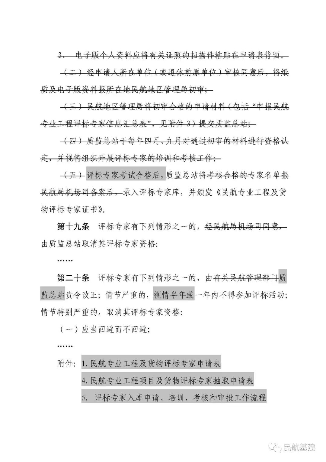 附件:《民航专业工程及货物招标投标评标专家和专家库管理办法》修订内容