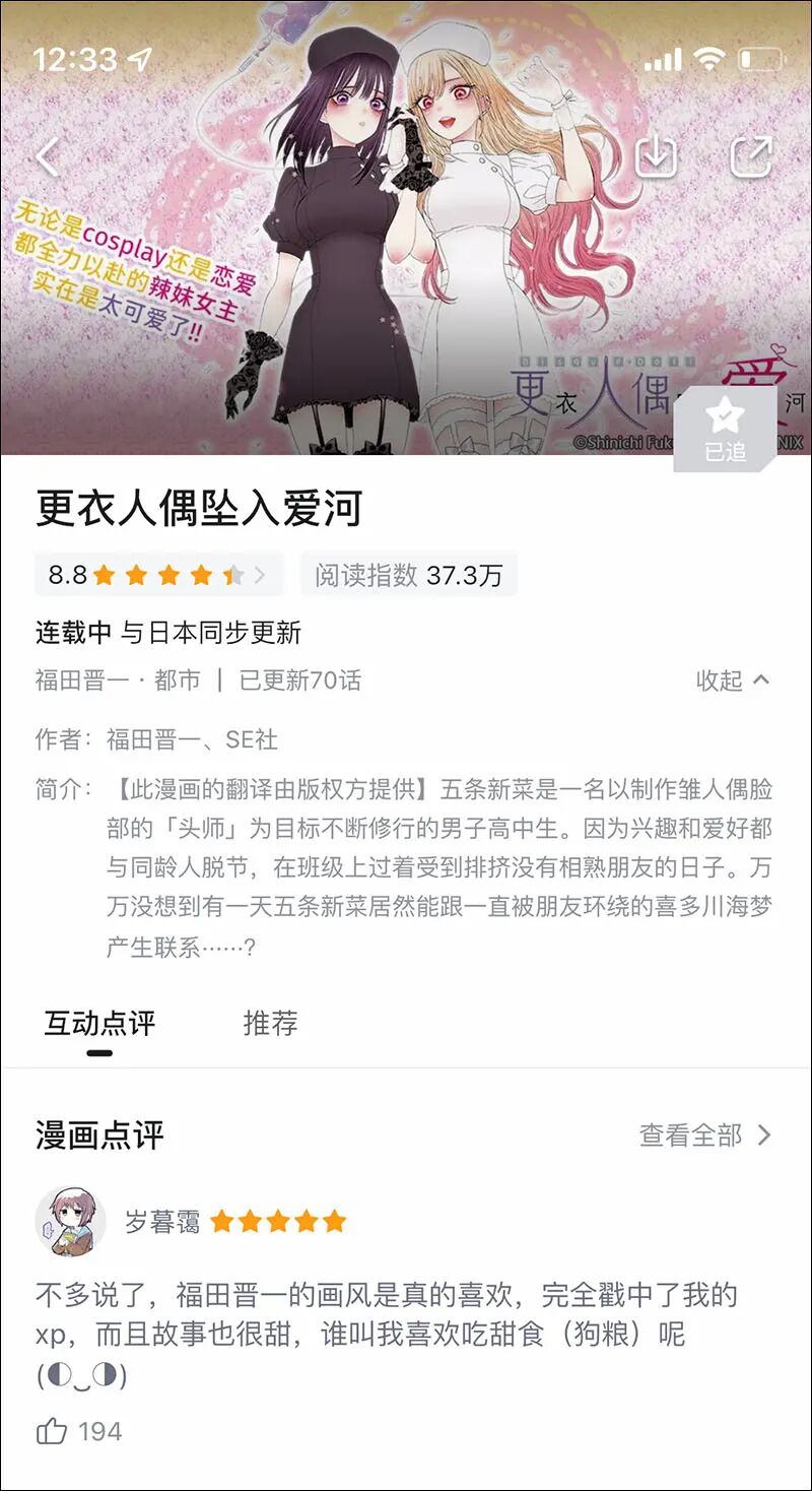 哔哩哔哩漫画上基本是和日本同步更新的,目前漫画更了七十话没有翻车的迹象。